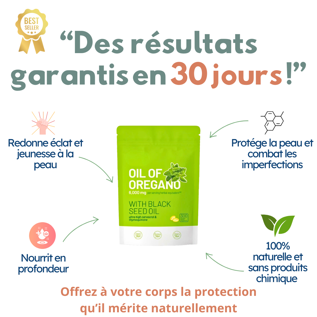 "C’est ce qui m’a plu ! Les gélules sont 100% huile d’origan naturelle, sans produits chimiques. Ça inspire confiance." – Mina K.